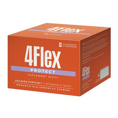 4Flex Complex suplement diety uzupełnia dietę w kolagen typu II UC-II®, dzięki zawartości witamin C i D wspiera stawy. Został opracowany w celu poprawy mobilności i wsparcia stawów1. Polecany dla wszystkich osób, chcących zadbać o zdrowie i kondycję stawów i kości1 (dla osób aktywnych, dla osób z nadwagą, dla osób z siedzącym trybem życia, dla osób starszych). Preparat został dodatkowo wzbogacony o miedź i mangan, które wspierają prawidłowe tworzenie i utrzymanie tkanki łącznej budującej m.in. ścięgna, torebki stawowe i więzadła .
