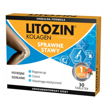 Składniki: kwas L-askorbinowy (witamina C); substancja wypełniająca: celuloza; kapsułka żelatynowa (żelatyna, barwnik: tlenki i wodorotlenki żelaza); kolagen niezdenaturowany typu II UC-II®; cholekalcyferol (witamina D); glukonian manganu (mangan); substancje przeciwzbrylające: dwutlenek krzemu, sole magnezowe kwasów tłuszczowych; tlenek miedzi II (miedź).