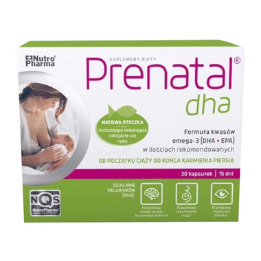 Kapsułka biała: [diglicynian magnezu - magnez; dwuwinian choliny - cholina; hypromeloza - składnik otoczki; diglicynian żelaza - żelazo; substancja przeciwzbrylająca - sole magnezowe kwasów tłuszczowych; węglan wapnia - składnik otoczki; cholekalcyferol - witamina D; chlorowodorek pirydoksyny - witamina B6; kwas foliowy: L-metylofolian wapnia, kwas pteroilomonoglutaminowy; jodek potasu - jod; metylokobalamina - witamina B₁₂, Kapsułka przeźroczysta DHA: [oczyszczony olej rybi zawierający 50 % DHA i 10 % EPA; żelatyna wołowa; substancja utrzymująca wilgoć - glicerol]
