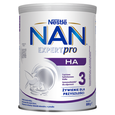 Składniki: mleko odtłuszczone, laktoza (z mleka), oleje roślinne (olej słonecznikowy, olej rzepakowy), odmineralizowana serwatka (z mleka), permeat serwatkowy (z mleka), cytrynian wapnia, fosforan sodu, cytrynian potasu, chlorek potasu, emulgator [lecytyny z (soi)], olej z mikroalg Schizochytrium sp., regulator kwasowości (kwas cytrynowy), mieszanina 2'-fukozylolaktozy/difukozylolaktozy (2'-FL/DFL) (zawiera laktozę), L-fenyloalanina, witaminy (C, E, niacyna, kwas pantotenowy, B1, A, B2, B6, kwas foliowy, K, D, biotyna, B12), chlorek magnezu, fosforan potasu, lakto-N-tetraoza (LNT) (zawiera laktozę), L-leucyna, L-izoleucyna, sól sodowa 3'-sjalolaktozy (3'-SL) (zawiera laktozę), L-tryptofan, sól sodowa 6'-sjalolaktozy (6'-SL) (zawiera laktozę), L-histydyna, siarczan żelaza (II), siarczan cynku, kultury bakterii Limosilactobacillus reuteri (DSM17938), siarczan miedzi (II), siarczan manganu, jodek potasu, selenian (VI) sodu